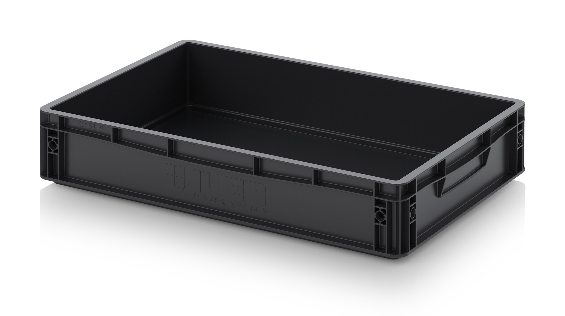 Евроконтейнер с ESD-защитой производства компании AUER Packaging изготавливается из антистатической пластмассы, что делает его пригодным, в частности, для надежного хранения и транспортировки электронной продукции.