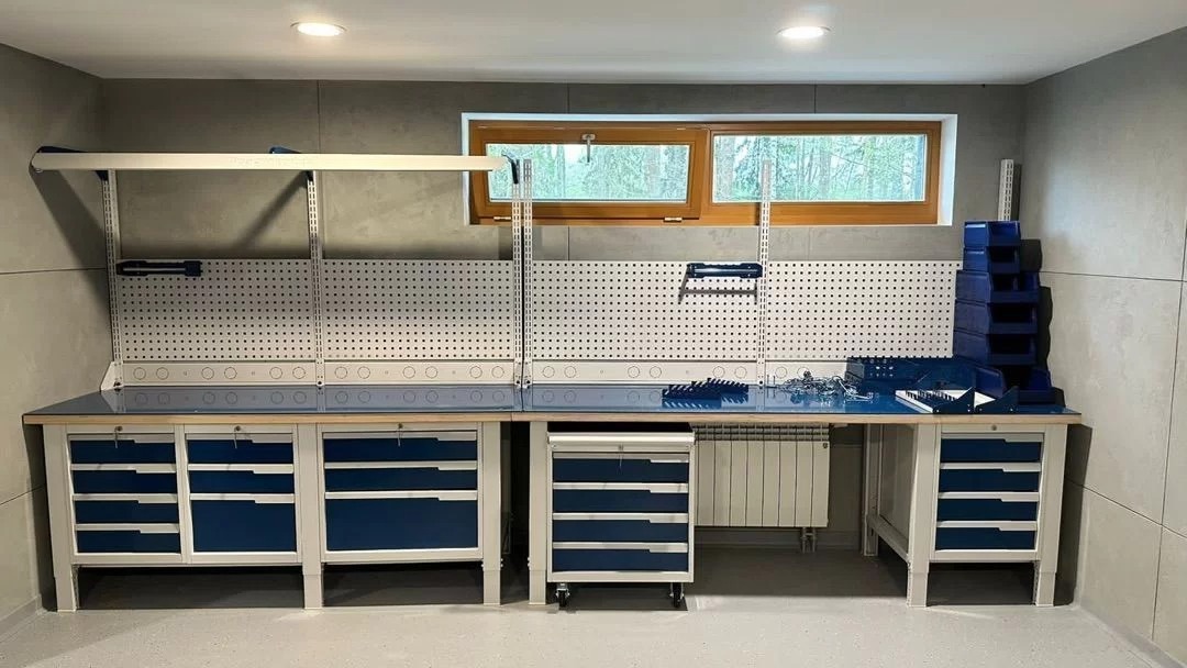 Рама верстака выполнена из холоднокатаной стали толщиной 2мм, модули - из стали 0,8мм.