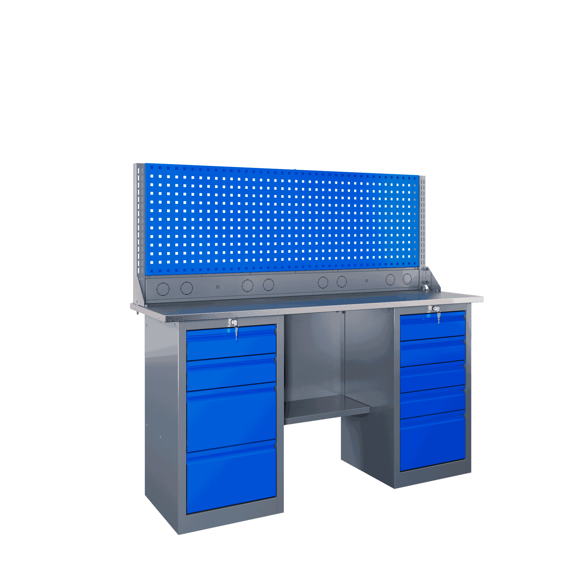 Самые компактные верстаки с глубиной столешницы 500 мм. Благодаря небольшой глубине, такие верстаки легко размещаются в ограниченных пространствах, например, в гаражах, мастерских и тд. Несмотря на компактные размеры, верстаки могут быть оснащены полками, ящиками и держателями для инструментов, что помогает поддерживать порядок и быстро находить нужные предметы.