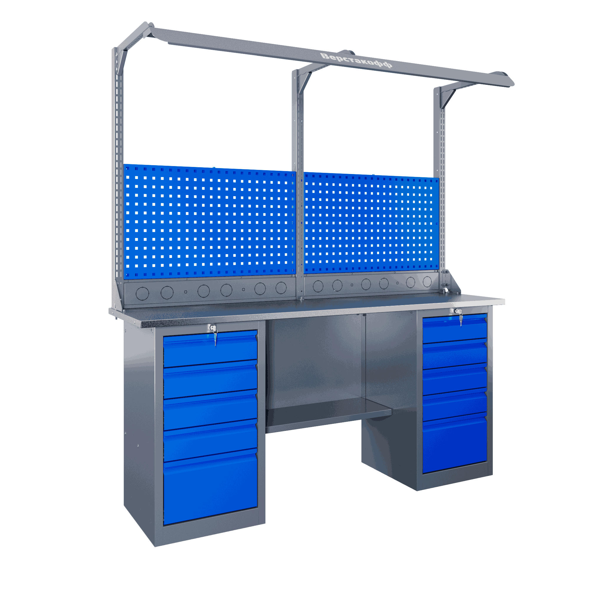 Самые компактные верстаки с глубиной столешницы 500 мм. Благодаря небольшой глубине, такие верстаки легко размещаются в ограниченных пространствах, например, в гаражах, мастерских и тд. Несмотря на компактные размеры, верстаки могут быть оснащены полками, ящиками и держателями для инструментов, что помогает поддерживать порядок и быстро находить нужные предметы.