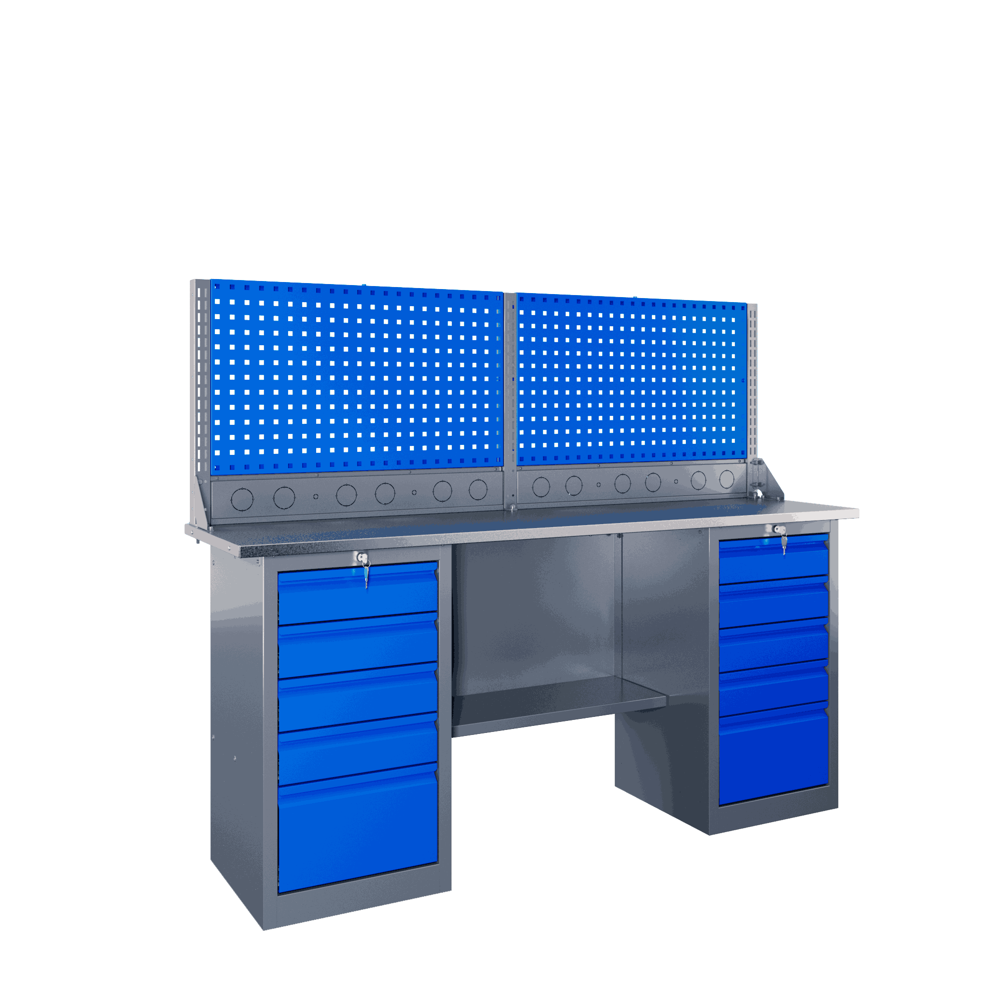 Самые компактные верстаки с глубиной столешницы 500 мм. Благодаря небольшой глубине, такие верстаки легко размещаются в ограниченных пространствах, например, в гаражах, мастерских и тд. Несмотря на компактные размеры, верстаки могут быть оснащены полками, ящиками и держателями для инструментов, что помогает поддерживать порядок и быстро находить нужные предметы.