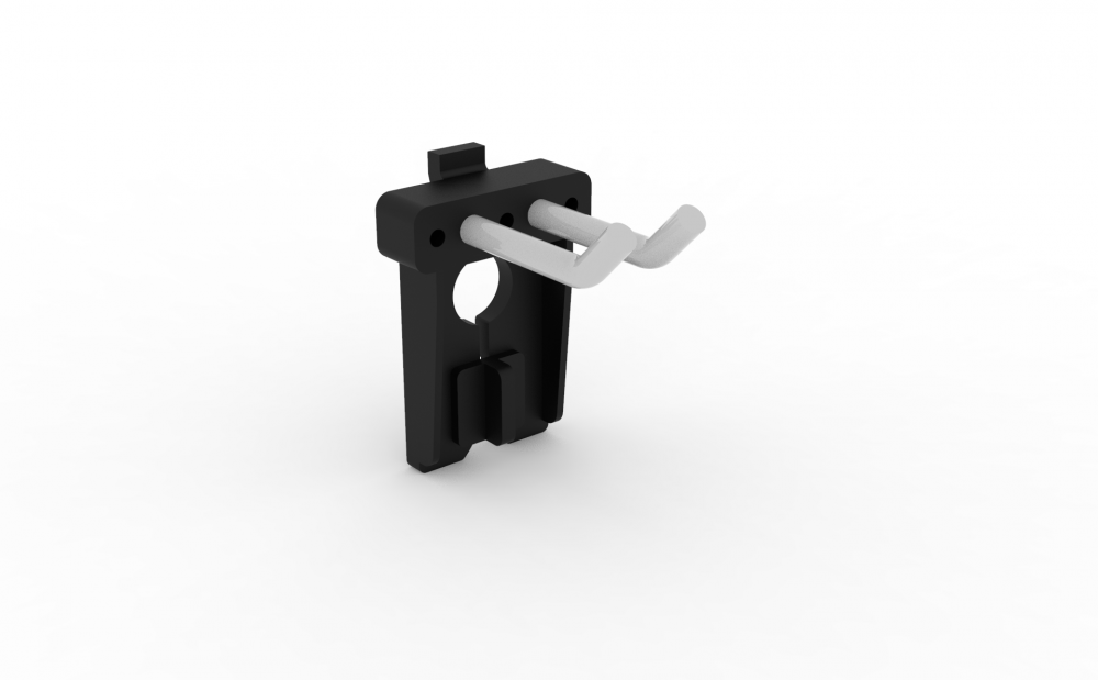 • Крепятся на пластмассовый фиксатор. Идёт в комплекте к каждому крючку.